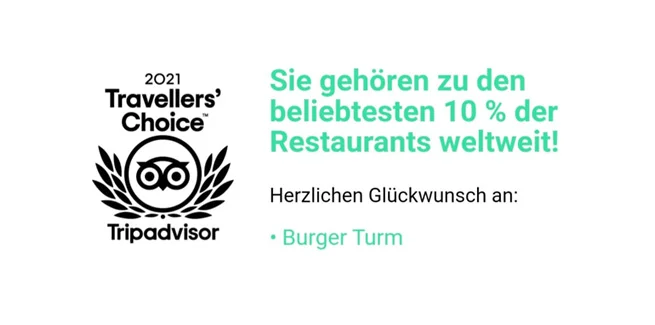 Burger Turm is awarded as the Best of the Best 2023 by Travelers’ Choice of Tripadvisor.